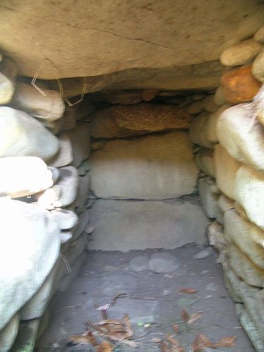 河原石乱石積の小さな石室。吾妻町の四戸古墳群1号墳とよく似ている。