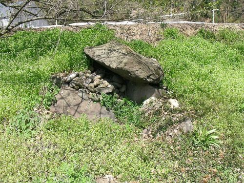 57号西方の56号近くに崩壊した石室?が露出していた。報告書「岩下清水古墳群」掲載の分布図から推定すると久呂保村58号墳か?58号なら石室材の寄せ集めらしい。