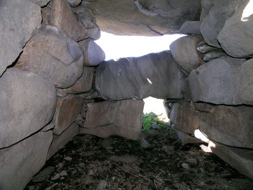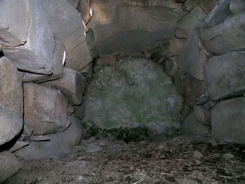 玄室。大ぶりの割石と転石を使用した通し積み。ほぼ矩形のプラン。1号墳と同様割石の平滑面が壁面に出るようにして一部加工がみられる。