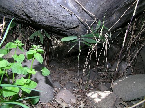 西から。2003/12探訪時にはここだけ笹薮が元気で石室を見つけることが出来なかった。