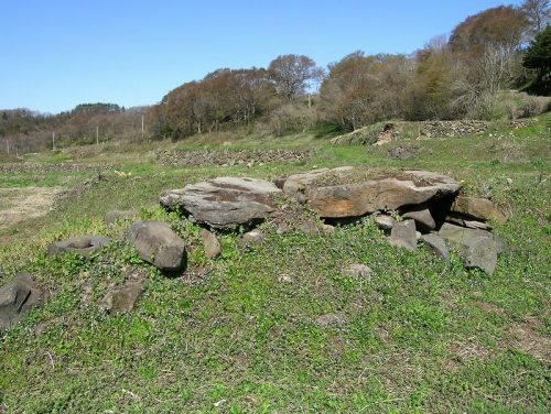 東から。墳丘は大部分削平されている。天井石2石と奥壁・側壁の一部が露出。