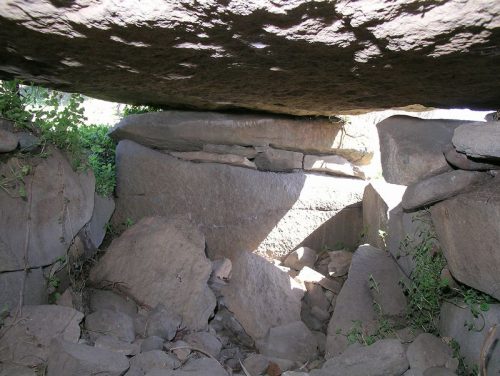 天井石の隙間から奥壁方向。内部は土砂で埋没している。構造的には1・2号墳と同系で7世紀後半の築造と推定されている。