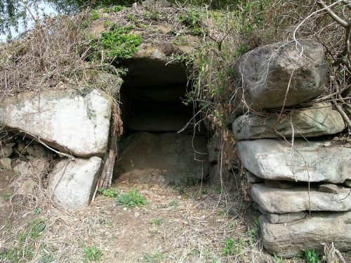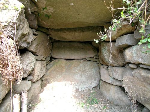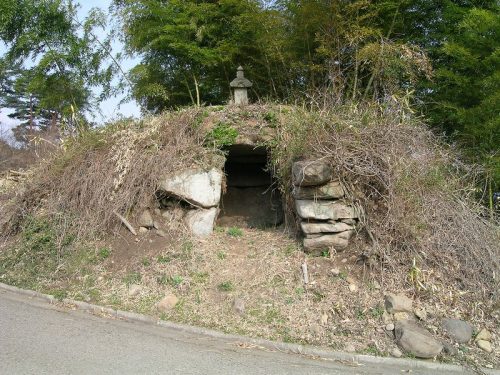 集落の北端に位置する。ここに案内板がある。南東向きに石室が開口。