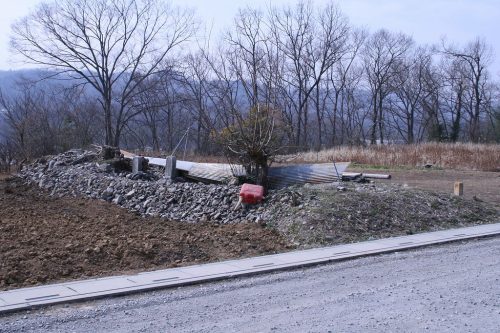 分布図(埼玉の古墳(比企・秩父)第66図)には載っていないが、供養塔の西方に石礫を多く含む土塁状のマウンドがあった。もしかしたらこちらが6号墳?