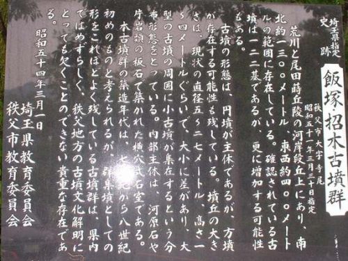 秩父市飯塚・招木古墳群パノラマ_案内板 80埼玉県, ち_秩父市, 旧ち_秩父市 コメントを追加 6月 212025 飯塚・招木古墳群は、和銅大橋西方の荒川左岸段丘状に分布しています。120基以上からなる大群集墳で7世紀から8世紀初めにかけて築造されたものと推定されています。古墳名 墳形 規模 所在地 立地 出土品、備考 引用 7号墳付近 70号墳付近 (撮影 2006/12) 返信する 返信をやめる Your Comment 以下のHTML タグと属性が利用できます: <a href="" title=""> <abbr title=""> <acronym title=""> <b> <blockquote cite=""> <cite> <code> <del datetime=""> <em> <i> <q cite=""> <s> <strike> <strong> Name (required) E-mail (required) URI 次回のコメントで使用するためブラウザーに自分の名前、メールアドレス、サイトを保存する。