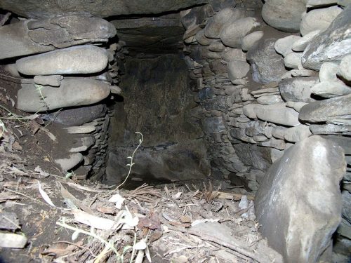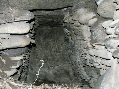 玄室。河原石の小口積。復元されている89号より小さな河原石を用いている。