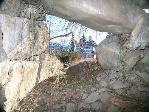南西から。荒川左岸段丘上に単独で築かれている。八百比丘尼の伝承がある古墳。墳丘はほとんど失われ石室が露出。7世紀前半の築造と推定されている。