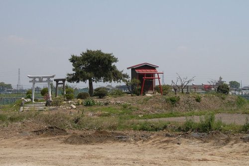 北東から。訪れたときは何かの工事で周囲が深く掘られていたが神社は残されるようだ。