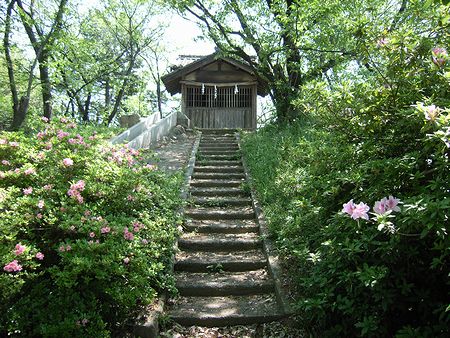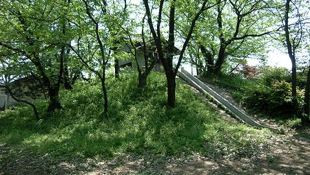 墳頂に元阿保稲荷神社社殿。石段に沿って設置されているコンクリートは最初何かわからなかったが滑り台のようだ。報告書では前方後円墳となっているが現状円墳のように見える。 神社入口には、この地が幕末の勤皇志士・塩川広平の生地ならびに墓である旨の説明版がある。