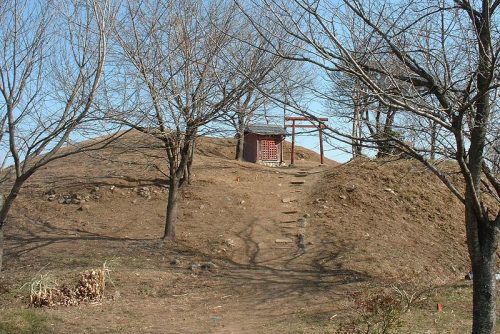 南から。群中最大の円墳。稲荷社の下から横穴式石室が検出されている。