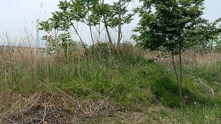 2号墳。工場北側は濃密な分布域であるが、原野のような状態で観察には不向き。