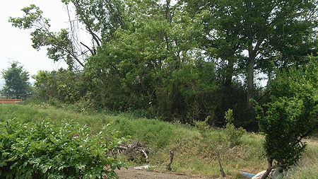 9号墳。水路際現存するはずだが藪で墳丘は見えず。
