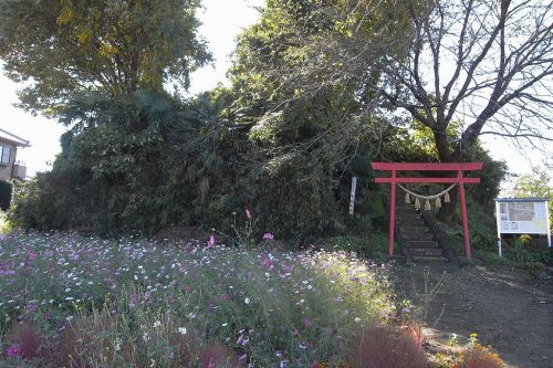 北から。浅間神社となっている。仏教文化と関係の深い銅椀などが出土し、7世紀後半の築造と推定されている。