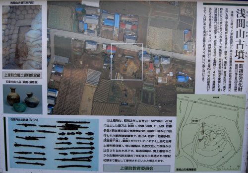 浅間山古墳 円墳 約38m、高さ約6m 神保原字東台 台地 直刀、鉄鏃、銅椀、耳環、玉、土師器、須恵器、横穴式石室、周掘 HP埼玉の遺跡マップ、現地案内板、埼玉県古墳詳細分布調査報告書