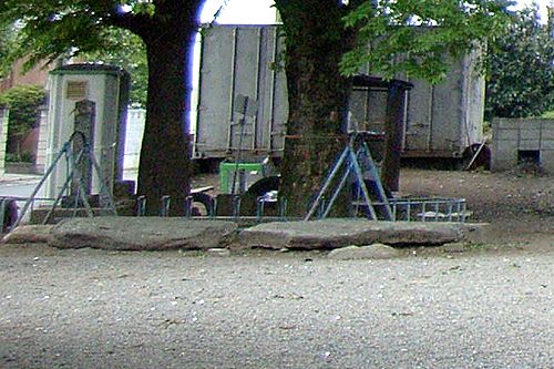 境内には巨大な平石が2個転がっているが石室材だろうか。