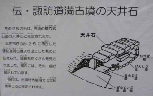 諏訪道満古墳天井石は、本庄市歴史民俗資料館敷地内に保存されています。