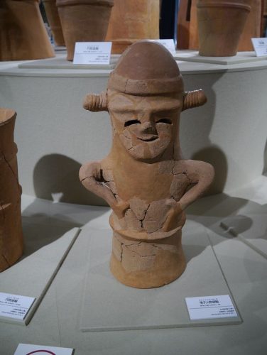 出土した人物埴輪。笑う埴輪の仲間?(本庄早稲田の杜ミュージアム常設展示)