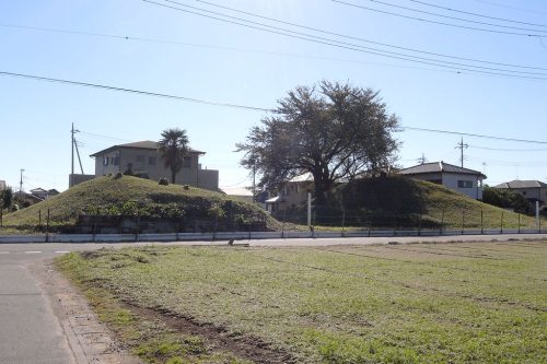 左が蚕影山古墳、右は山の神古墳。どちらも本庄市指定史跡。