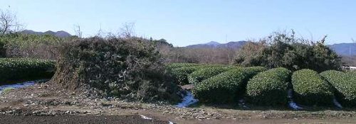 18号墳の西側にある20号墳。耕作で左半分が無くなっている。右奥は21号墳。