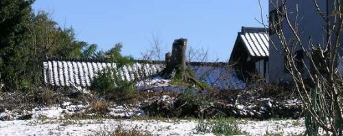 51号墳を西から。民家に囲まれた台地の尾根のような場所にある。57号墳。no image 民家の庭先にかろうじて残っている。