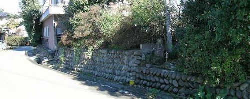 一部残存の68号墳。石垣が一段高くなっている部分が古墳と思われる。