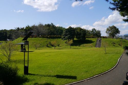 前方部から後円部。盛り土を施し現状保存された。