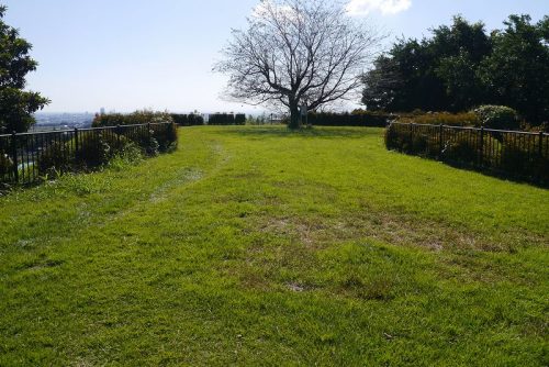 北から。桃井城址の物見台があった場所で、平成24年公園整備で初めて確認された古墳。