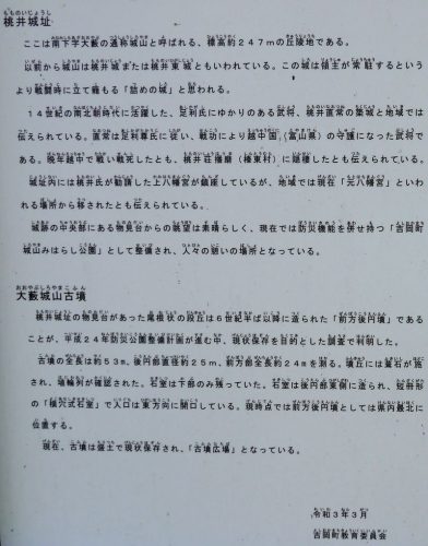 大藪城山古墳 前方後円墳 全長約53m、後円部径約25m、前方部長約24m 南下字大藪 葺石、埴輪、横穴式石室 現地案内板