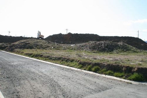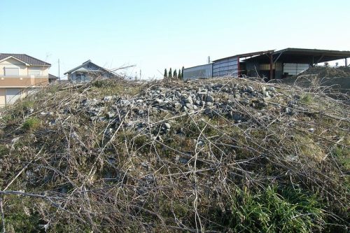 北西から。左が後円部、右が前方部。周囲は宅地造成が進行中で多くの古墳が消滅した。前方後円墳の形がよく残っており、古墳公園として整備して欲しいところ。