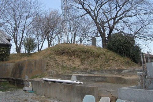南西から遠景。周辺の平地にある古墳の中では道灌山古墳と並び最大規模の円墳。地籍図から周溝が認められそれを含めると50m以上の規模となる。