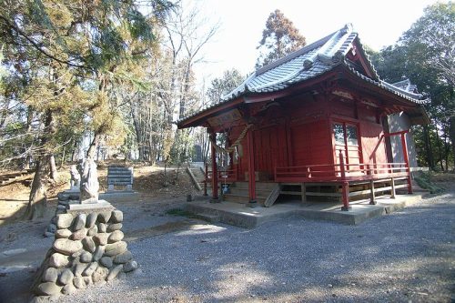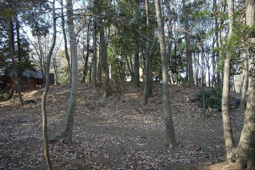 丘陵西側から長い石段を登ると丘陵頂部の河輪神社へ到着。社殿左側に河輪神社古墳がある。