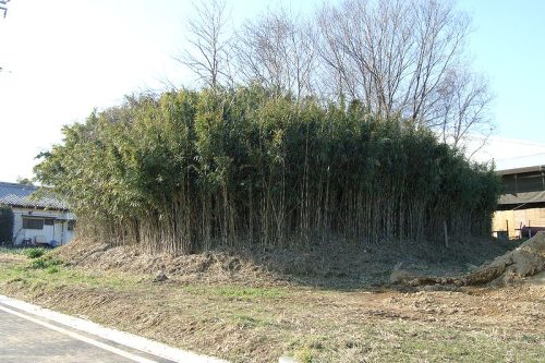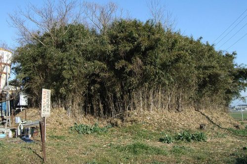 熊谷集落内の牛舎東側ある。前方後円墳とのことだが、篠藪で墳形を見定めることができない。