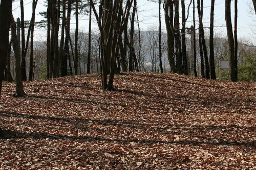 2号墳。グランド北東側の丘陵尾根上に3基の小円墳が並んでいる。