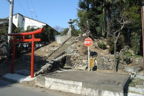 南東から後円部。墳丘上は稲荷神社となっている。この奥に宅地で削られているが発達した前方部も残っている。この周辺では最大の前方後円墳で、6世紀中葉から後半の築造と推定されている。