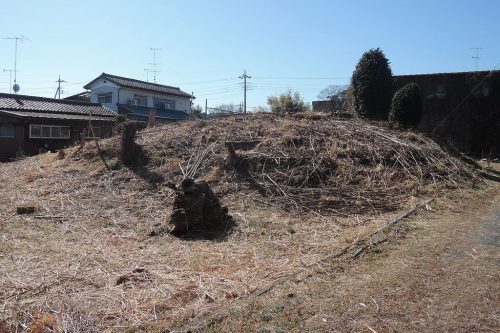 北東から。主体部や出土遺物などは確認されていない。現在(2024)の遺跡地図では当地は伊勢原遺跡(弥生・古墳時代の集落)とされており古墳とは認識されていないようだ。