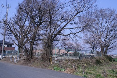 南西から。西側は道路で削られている。現状前方後円墳の形をしているが、トレンチ調査では前方部と後円部の間に周堀があったようだが?埼玉県古墳詳細分布調査報告書では径約20mの円墳としている。