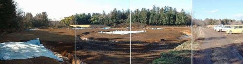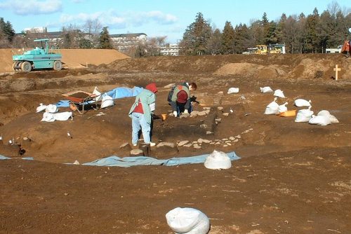 発掘調査中の現場を東側から。1,2号墳と9~12号墳の分布地を発掘中と思われます。(2002/12)許可を得て見学。