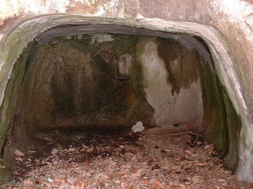 高根1号墓(高根横穴墓) 横穴墓 開口部の幅2.5m、高さ1.5m、奥行4m 小江川字中谷 丘陵・山林 旧江南町教育委員会HP