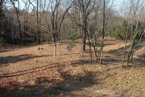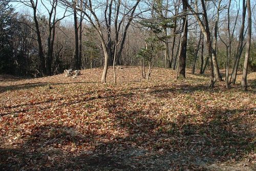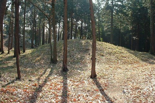 手前の低い高まりが5号墳。奥が4号墳。右に見えるのは3号墳の裾。