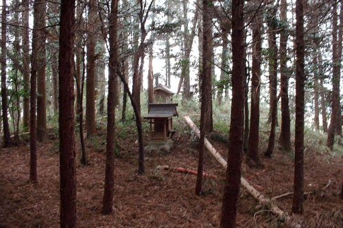東から。墳丘の西は道路に近いのに薄暗い森の中。山王宮となっているようです。出土した須恵器から7世紀中葉の築造と推定されています。