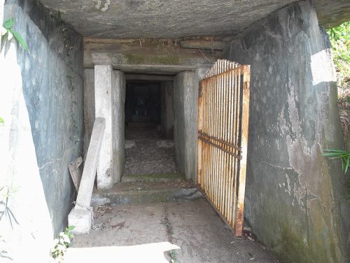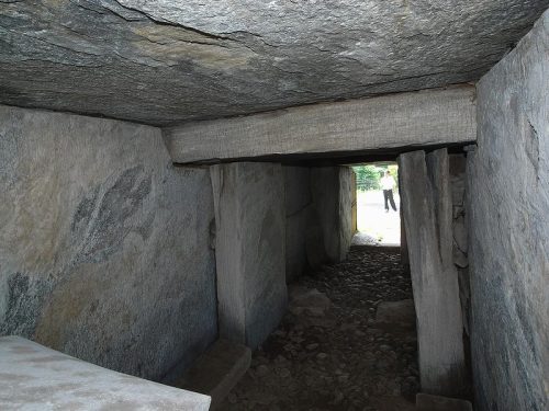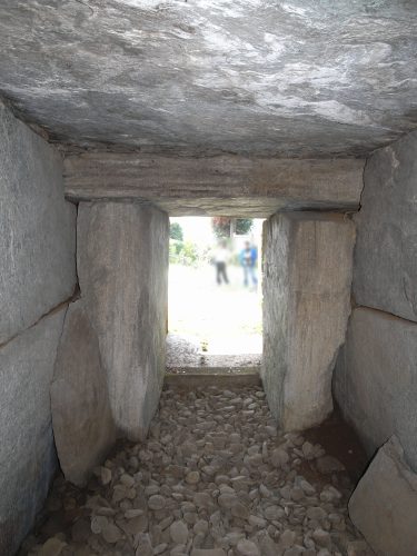玄室を奥から。玄門は厚みのある緑泥片岩。