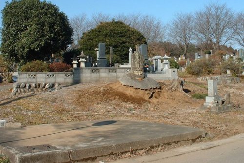東から8号墳推定地。この墓地内だけで11基ほどの円墳があるはず。