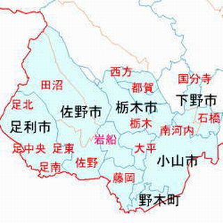 黒_現市町村 赤_平成合併前(足利市を除く)
